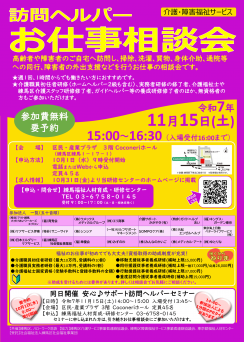 【求人情報の公開】11/15(土)開催 訪問ヘルパー お仕事相談会 予約申込受付中